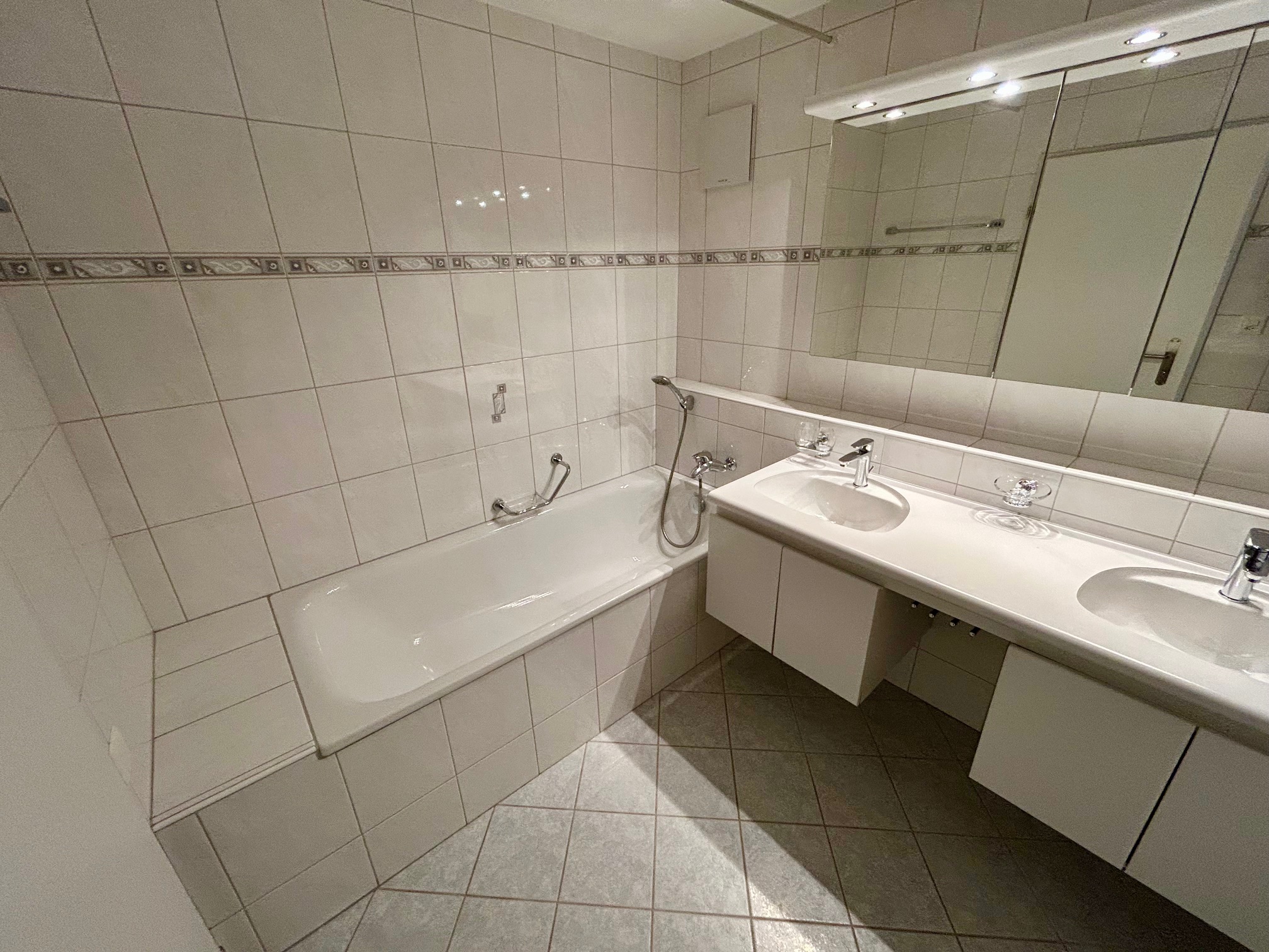 - Bad mit Doppelwaschtisch und Badewannne